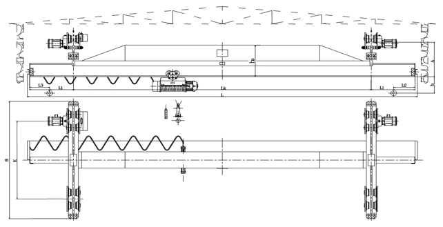 本產(chǎn)品為一般用途起重機,多用于機械制造裝配、倉庫、山洞等場所。起重機主要由橋架(金屬結(jié)構(gòu))、電動葫蘆、運行結(jié)構(gòu)、電氣設(shè)備等四部分組成。